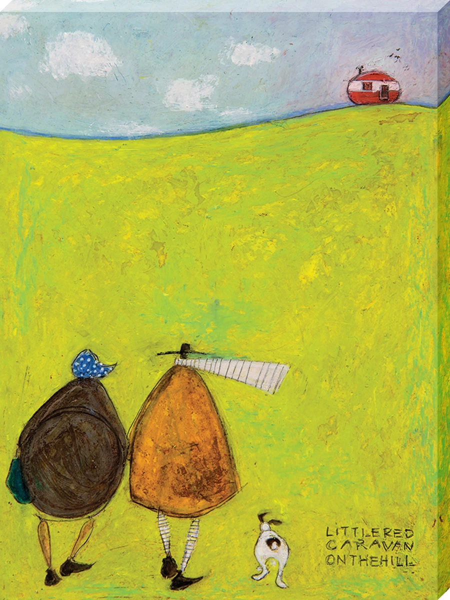 What a lovely day for a walk! Enjoying a brisk stroll, Mr Mustard, his wife Violet and their little dog, Doris, are pictured walking towards a red caravan perched on top of a hill. British artist, Sam Toft, is adding to her ever-growing collection featuring this humorous trio, and these prints are becoming increasingly popular across the globe. Created by using oil pastels and a scraping technique to add texture, Sam Toft really brings these prints to life.