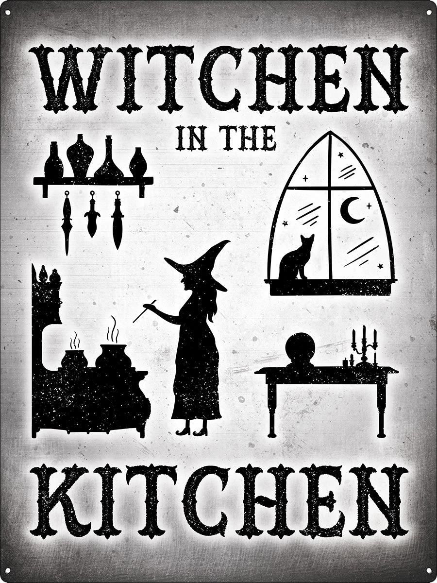 Cook up a treat with this witchy tin sign! Swap the chefs hat for a suitably more pointed one and dust of the ol’ spell book this Halloween, because things are about to get spooky! Some essential ingredients you may need include frogs legs, a handful of of bat wings and a sprinkle of fairy-dust. So be sure to keep the ghouls out with this wicked tin sign!